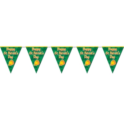 Beistle "Happy St Patrick's Day" Pennant banner is made of weather resistant poly material and has grommets for hanging. Banner measuring 10" x 12' is ideal to display either indoors or outdoors, sold as 4 per pack.