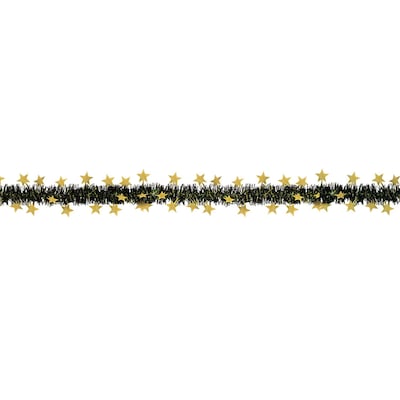 Beistle 12' Flame Resistant Metallic Star Garland; Black/Gold, 3/Pack