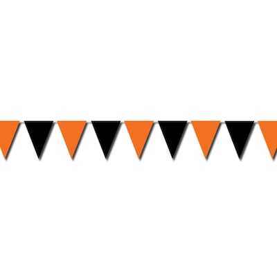 Beistle "Halloween" Outdoor pennant banner in orange/black color measuring 17" x 30' is perfect for Halloween parties, sold as 2 per pack.