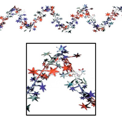 Beistle 25' Gleam 'N Flex Star Garland; Red/Silver/Blue, 4/Pack