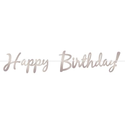 Celebrate in style with Beistle's Metallic Silver Foil Happy Birthday Streamers! Measuring 9 inches tall by 5 feet wide, this shiny decoration is made of silver foil-covered cardstock and includes white ribbon for hanging. Some assembly is required, but the final look is worth it—perfect for party walls, dessert tables, photo backdrops, and more. Whether you're throwing a big bash or a cozy get-together, this elegant banner adds a festive, polished touch. Beistle has been bringing parties to life since 1900—celebrate with a name you can trust.