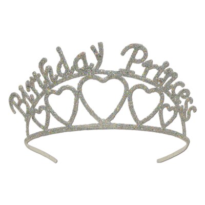 Beistle Glittered birthday princess tiara in silver color has a stylish design and can fit most head size. Tiara promotes fun and also helps to make the event memorable, sold individually.