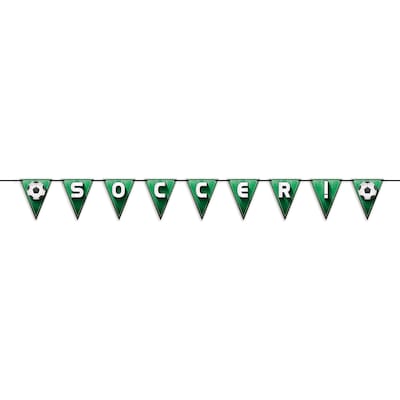 Beistle Soccer/Football Double-Sided Pennant Streamer, 7.5" x 8', Green, 3/Pack (53425)