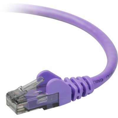 The Belkin A3L980-05-PUR-S 5' CAT-6 RJ-45 Snagless Patch Cable, Purple, is apt for 10 Gigabit Ethernet networks and facilitates error-free data transfer.