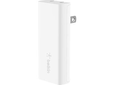 Power an iPhone or Samsung device with this Belkin BOOST?CHARGE dual 37W wall charger. Packed with PPS technology, allowing you to fast charge a compatible device through the 25W USB Type-C port while powering another one with the 12W USB-A port. This charger is USB Type-C PD 3.0 certified, delivering fast charging speeds of up to 0-50% in 25 minutes. Designed with a compact footprint that fits any environment. Perfect for homes or offices that have a variety of tablets and smartphones.