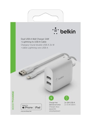 Belkin BOOST CHARGE USB-A Wall Charger with Cable, 24W, White (WCD001DQ1MWH)