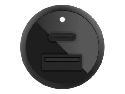 Power both iPhone and Samsung devices while on the road with our compact and powerful BOOST?CHARGE Dual Car Charger. This car charger is engineered with PPS technology, delivering a dynamic power output depending on the device its connected to, making it a safe and powerful option for a variety of devices. Fast charge an iPhone, Samsung, or other compatible device while charging another device on your commute. The dual car charger has two powerful charging ports, a 25W USB-C port and a 12W USB-A port. Our Dual Car Charger with PPS packs a powerful charge into a compact, travel-ready design that fits most vehicle dashboards.