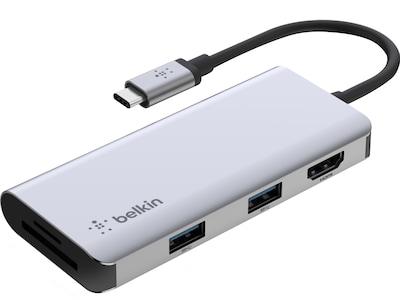 Connect a MacBook, Chromebook, or other USB Type-C laptop to a 4K display and additional devices with this Belkin CONNECT five-in-one multiport USB Type-C adapter hub. Its slim, compact, and durable aluminum casing makes it a perfect adapter when on the road, at home, at the office, or in the classroom. Access USB ports on modern laptops through a single USB Type-C cable, and extend your display to a 4K monitor through its HDMI port, delivering videos up to 4K at 30Hz. Great for photographers, videographers, and content creators, as the SD and microSD card slots allow for a fast transfer of data, images, and video. Connect to additional devices or peripherals with the 2 x USB Type-A ports.