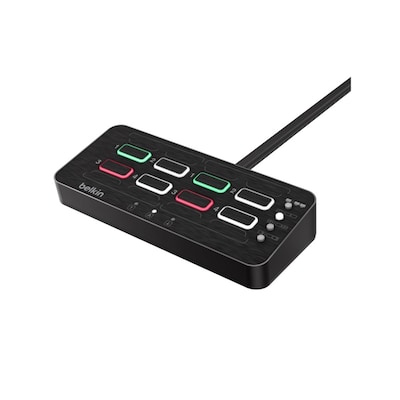 - Connects to Belkin Secure KVM switches via a dedicated interface, enabling seamless host selection and control without reaching for the main unit
