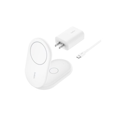 BelkinBoostCharge MagSafe Wireless Charging Stand for Apple, 15W, White (WIZ028TTWH)
