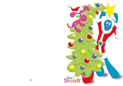 Ben stretch - dog , tree and stretch guy - 7 x 10 scored for folding to 7 x 5, 25 cards w/A7 envelopes per set