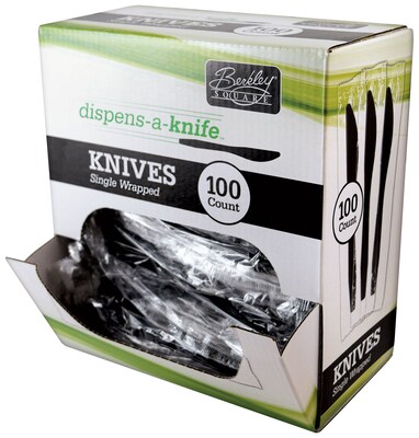 Berkley Square Dispens-a-Knife Polystyrene Knife, Medium-Weight, Black, 100/Box (1223001)