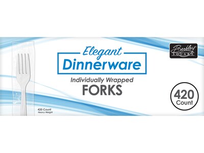 Box of 420 individually-wrapped forks. Perfect for parties, the workplace, cookouts, or other events.