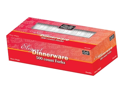 Supply the office with these heavy-weight forks that are made with polystyrene material for durability and resistance to bacterial growth, so they can be stored for a long time. These white Berkley Square Elegant Dinnerware forks are conveniently packaged to save space and are disposable to save on cleanup time.