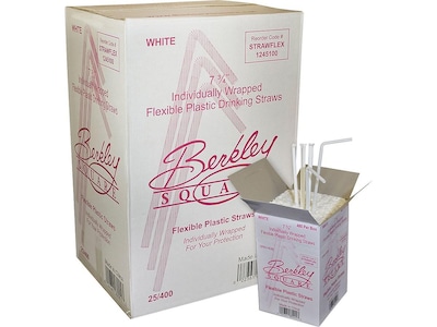 Streamline drinking with these wrapped jumbo flex straws. The sturdy design and flexible angle make these straws ideal for arts-and-crafts projects. This case of 10000 Berkley Square jumbo white flex straws provides plenty for high-volume dining or crafting needs.