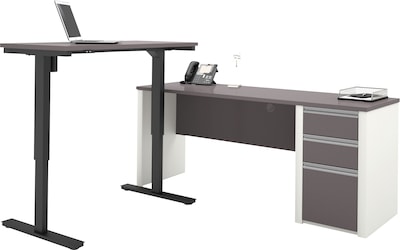 Bestar Connexion 72"W L-Desk with Electric Height-Adjustable Desk, Slate/Sandstone (93885-59)
