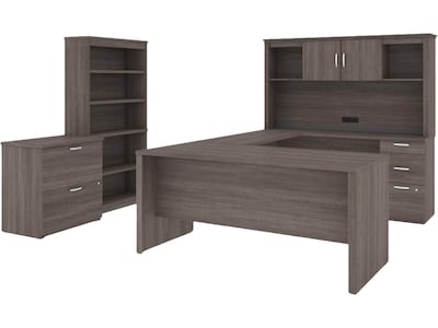 Bestar Logan 66" U-Shaped Executive Desk with Hutch, Lateral File Cabinet, and Bookcase, Bark Grey (46851-47)