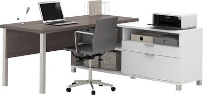 Bestar Pro-Linea 71"W L-Desk, White & Bark Grey (120883-47)