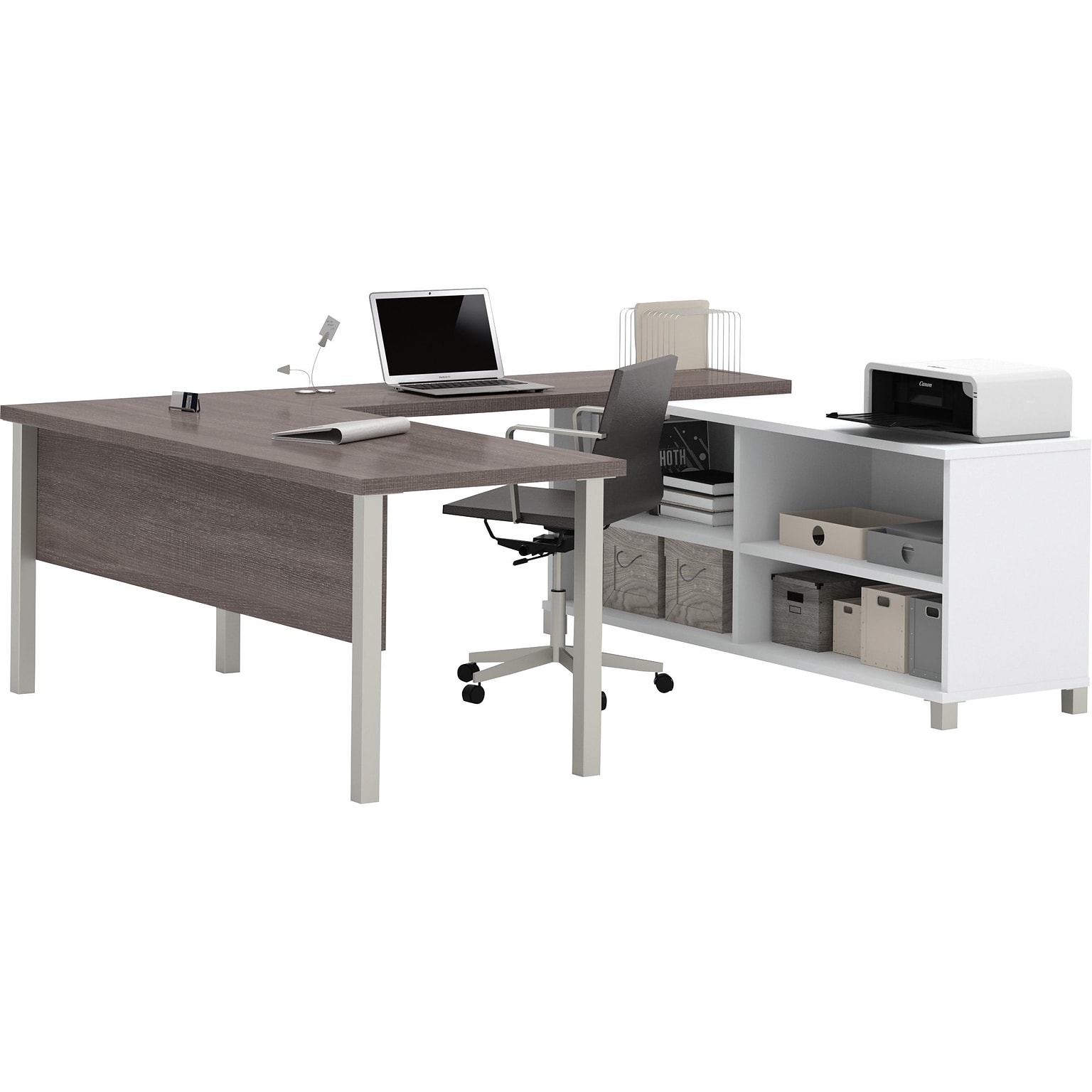 Bestar Pro-Linea U-Desk, White/Bark Grey (120881-47)