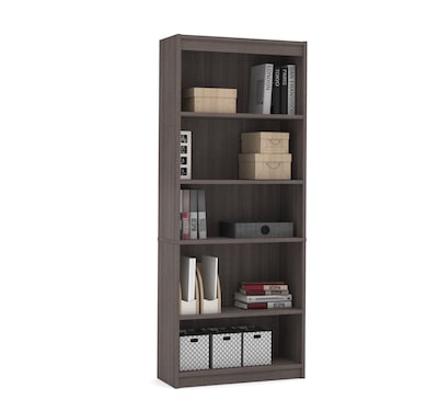Bestar 72" 5-Shelf Bookcase with Adjustable Shelves, Bark Gray (65715-000047)
