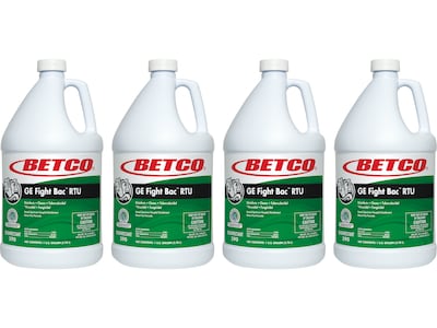 Disinfectant with the environment in mind. Betco GE Fight Bac RTU kills over 99.9% of bacteria and viruses in 3 to 5 minutes contact time. Formulated with a botanical active ingredient, citric acid, and free from harsh chemicals, this product provides superior disinfection and meets the EPA Design for the Environment standards. Areas of use: hospitals, kitchens, bathrooms, healthcare facilities, medical offices, daycare centers, schools, nursing homes, grocery stores. Types of surfaces: on washable hard nonporous surfaces of doors, walls, fixtures, metal, stainless steel, glazed porcelain and glazed ceramic tile, vinyl, plastic, and glass. It includes infant care equipment, kitchen surfaces, wrestling mats, computer surfaces, and keyboards.