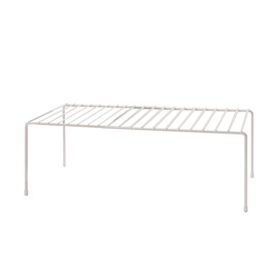 Organize your closets and cabinets with Better Houseware's space-saving White Medium Storage Shelf. It automatically creates extra space on a shelf or in a drawer. It's ideal for organizing everything from sheets and towels, clothing, shoes, and handbags to dishes, pantry products, office or art supplies, sports equipment, toys, and games. The only limit is your imagination.