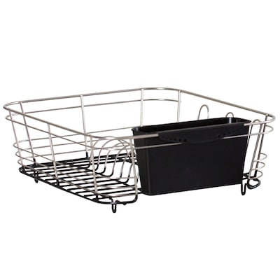 The Stainless Steel 2-Piece Dish Drainer from Better Houseware holds up to 8 dinner plates and has a side rack to hold cups/mugs. The set includes a cutlery holder that conveniently snaps on to the 2-Piece Dish Drainer to hold silverware. The coated steel on the bottom portion and feet protect the dishes and help resist rust.