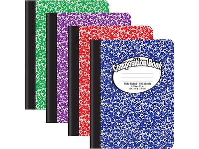 Better Office 1-Subject Composition Notebooks, 7.5" x 9.75", Wide Ruled, 100 Sheets, Assorted Colors, 4/Pack (25204-4PK)