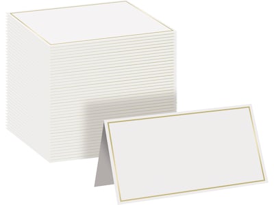 Better Office 2" x 3.5" White/Gold Table Tent Place Card, 100/Pack (64646-100PK)