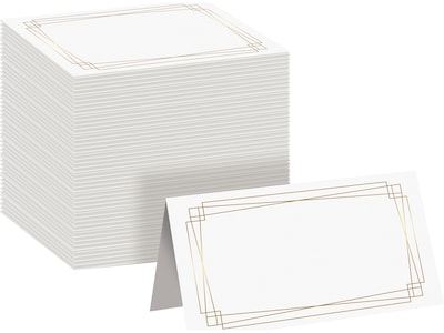 Better Office 2" x 3.5" White/Gold Table Tent Place Card, 100/Pack (64648-100PK)