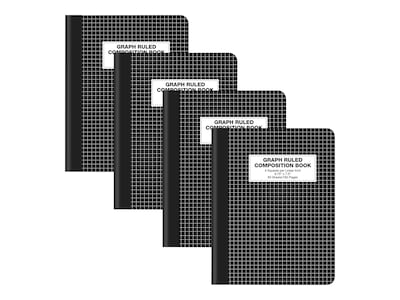 Better Office Composition Notebooks, 7.5" x 9.75", Graph Ruled, 80 Sheets, Black, 4/Pack (25604-4PK)