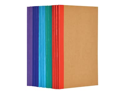 - Kraft softcovers with assorted vibrant color spines (red, green, blue, dark blue, and purple) make you feel fancy