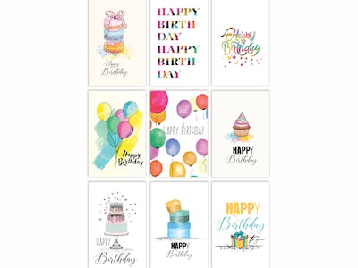 - Bulk boxed birthday card set suitable for people of either gender and of any age