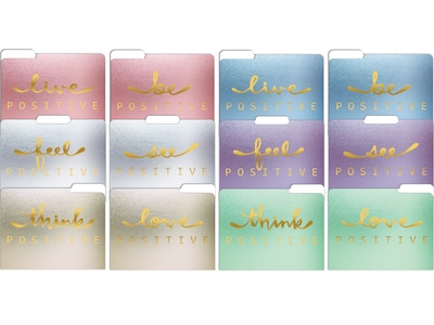 Better Office Gold Foil Positive Thoughts Heavyweight File Folders, 1/3-Cut Tab, Letter Size, Assorted Colors, 12/Pack