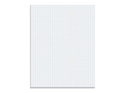 The Better Office 8.5" x 11" quadrille-ruled pad contains 50 sheets with blue grid lines (four squares per linear inch). The sheets are double-sided and attached to a heavy-duty chipboard backer board to help prevent the pad from bending. Glue-bound at the top (along the short side), the sheets are easily removed from the pad.