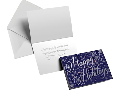 - Make your Christmas greetings stand out with this holiday greeting card accented with silver-tone foil on a high-gloss blue background