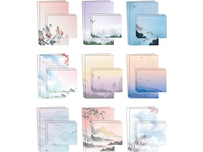 - Stationery printed in nine Japanese watercolor designs and matching envelopes