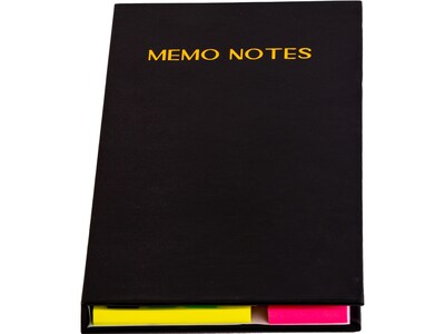 - 410 pieces featuring six assorted designs and rainbow colors of note tabs, sticky notes, and page markers in a secure, padded memo book