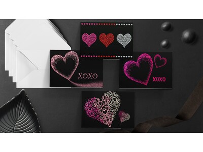 These Better Office note cards come in a mix of four artful designs, each design featuring hot-stamped glitter set against a white or black background for a total of eight designs, with three of each design in the set. These note cards come with 24 white envelopes. The cards are made of 90 lbs. cover stock for a high-quality look and feel.