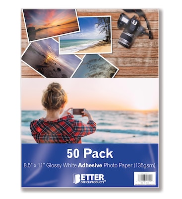 Better Office Products Photo Paper, Glossy, Self-Adhesive Sticky Back Paper, 8.5" x 11", 50 Sheets (32211-50PK)