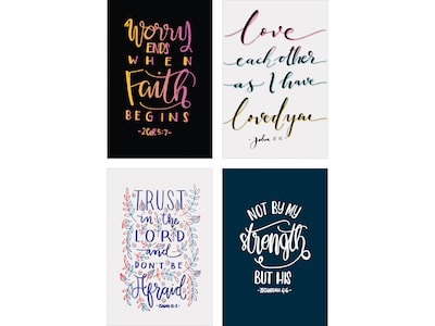 - Set of cards in four different designs with a unique biblical quote to convey faith, strength and hope, trust, and love