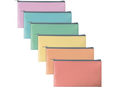 Six reusable 11.5" x 6.2" zippered leatherette bags in assorted colors from Better Office are great for business, household, or personal use. These durable, water-resistant utility bags are useful for discreet transport of sensitive contents such as cash, checks, receipts, personal effects, jewelry, or special-occasion silverware. Use them as general utility bags to contain and organize household items such as phone charging cords, auxiliary computer cords, office, school or art supplies, makeup and brushes, crochet hooks, or toiletries. Also great for travel or just to have extras on hand when you need them.