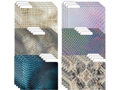 - Fashion file folders come in six Snakeskin designs in six colors (four of each design)