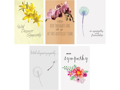 The Better Office offers 100 white envelopes and 100 bulk sympathy cards, each 20 cards feature one cover design. There are five designs to convey your heartfelt condolences, each with a unique expression for the message you wish to convey. Made of 90 lb. cover stock for a high-quality look and feel. The cards and envelopes are packed into an attractive and sturdy kraft corrugated box for protection and long-term storage.