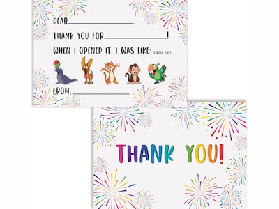 - Unique design with a fun template for kids to write in the card recipient's name, their own name, the gift received, and cute animal characters to circle to depict their gratitude