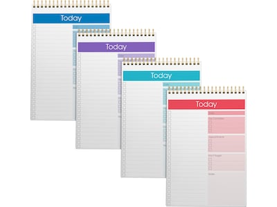 These To-Do List 52-sheet notepads by Better Office have thick white sheets with an attractive ombre artwork design in four assorted colors. The double-wire spiral top binding keeps sheets intact for easy viewing. Use these notepads to keep track of all your goals, tasks, and projects.