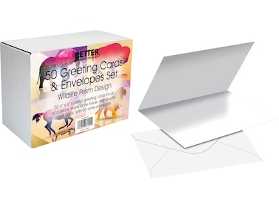 Better Office Wildlife Prism Cards with Envelopes, 4" x 6", Assorted Colors, 50/Pack (64555-50PK)