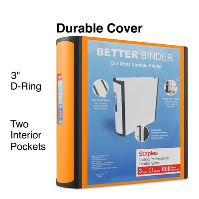 Staples 3" 3-Ring Better Binder, D-Ring, Orange (ST55892-CC)
