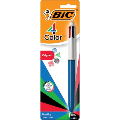 - One 1-count pack of BIC 4-Color Original Retractable Ball Pens, pen barrel color may vary