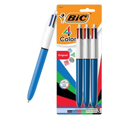 - One 3-count pack of BIC 4-Color Original Retractable Ball Pens